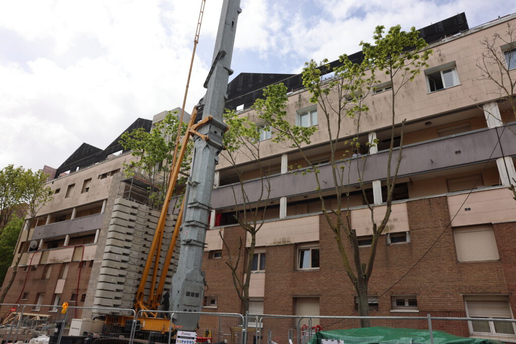 C’est une nouvelle étape dans le renouveau des Glacis, le 16 avril Partenord le Groupe a franchit une étape symbolique dans la réhabilitation de ce quartier, avec la pose de la première façade ossature bois sur la résidence Bonpain.